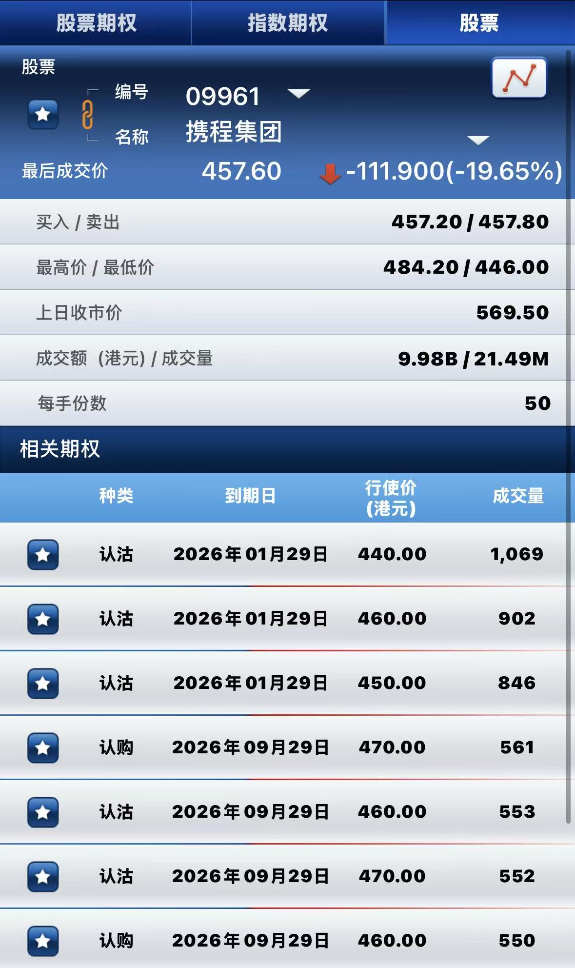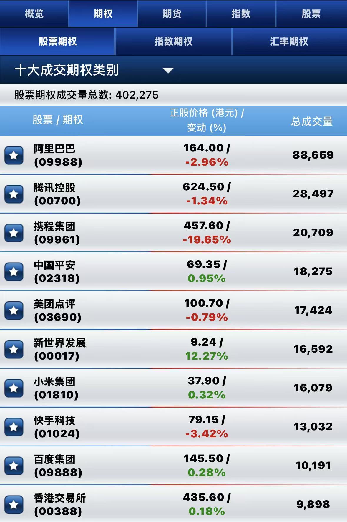 港股期權半日成交超40萬張。其中,阿里巴巴-W成交量居前,期權成交超8.8萬張;騰訊控股名列次席,期權成交超2.8萬張; 攜程集團-S位居第三,期權成交超2萬張。
