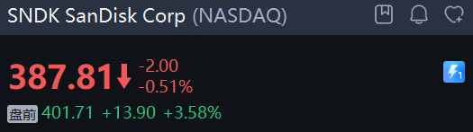 存儲概念盤前普漲, SanDisk Corp 漲超3%,伯恩斯坦將其目標價從300調整到580美元。美光科技漲超3%,西部數據、希捷科技漲超2%。