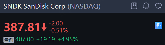 存儲概念普漲, SanDisk Corp 漲近5%,伯恩斯坦將其目標價從300調整到580美元。西部數據、美光科技漲超3%,希捷科技漲超2%。