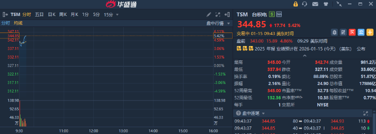 華盛資訊1月15日訊,受臺積電財報超預期提振,美股半導體板塊集體走強。