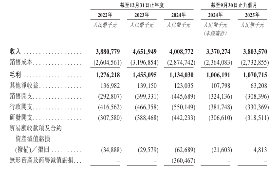 公司於2022年-2024年收入分別爲38.81億元、46.52億元及40.09億元;2025年首9月收入同比增長12.86%至38.04億元。