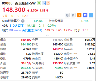 華盛資訊1月19日訊,港股百度集團-SW逆勢漲近2%,消息面上,旗下蘿蔔快跑在阿聯酋阿布扎比推出全無人駕駛出行服務。