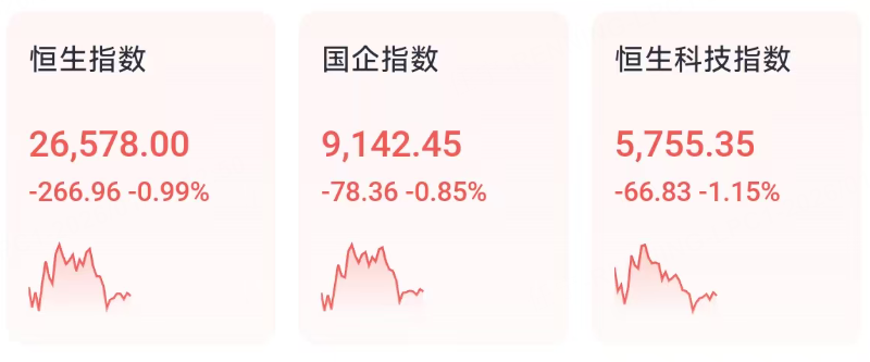 1月19日週一,港股上午集體走低,恒指午間收跌0.99%,科技指數跌1.15%,國企指數跌0.85%。