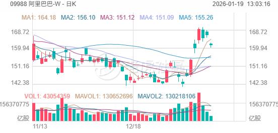 阿里巴巴-W 上午跌超3%,很可能連續三天收陰線。