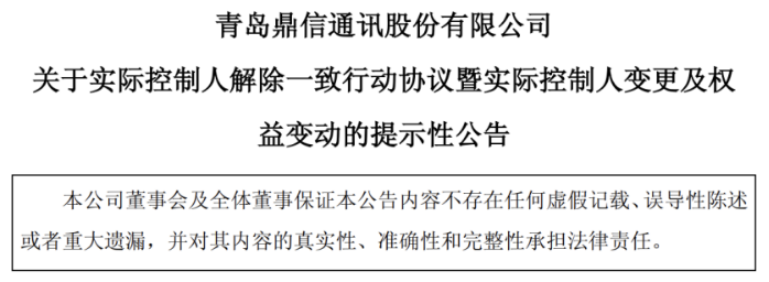 據瞭解,作爲鼎信通訊的創始人,雙方最早於2013年1月24日簽署《一致行動協議》,並於2019年10月11日續簽,本次解除標誌着維繫超過12年的一致行動關係正式結束。