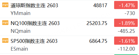 1月20日,美股三大股指期貨齊跌,截止發稿,道指期貨跌1.47%,納指期貨跌1.89%,標普500指數期貨跌1.61%。