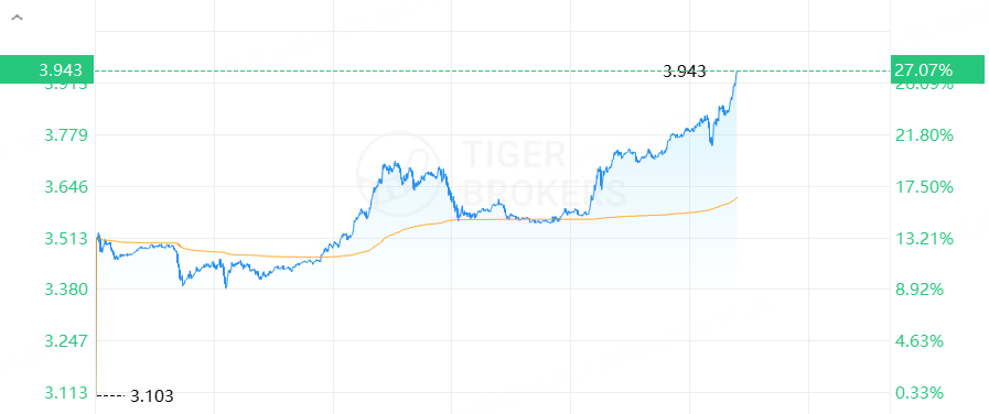 美國天然氣期貨漲超27%,現報3.943美元/百萬英熱