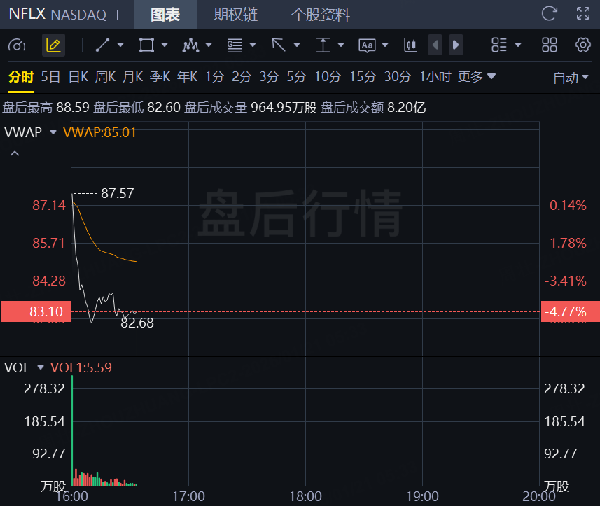 1月21日,流媒體巨頭奈飛盤後跌超4%!此前該公司發佈了疲軟的業績指引,低於華爾街對2026年初的預期,並指出儘管付費用戶數量創下3.25億的紀錄,廣告銷售額也大幅增長,但其增長速度仍將放緩。
