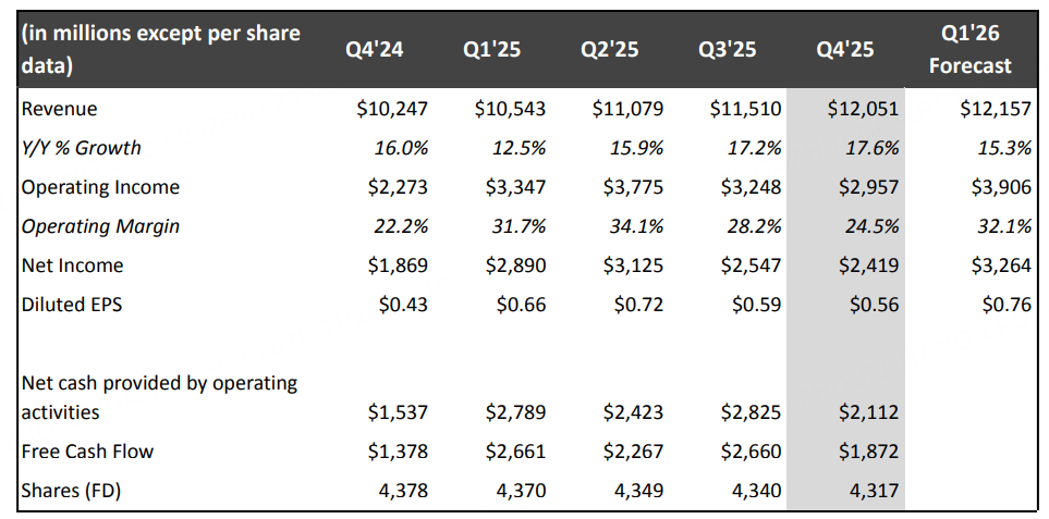 該公司預計2026年全年營收將在507億美元至517億美元之間,略高於此前預期的510.3億美元。然而,這一年度營收預測僅代表 12%-14%的同比增長,或11%-13%的匯率中性增長率,低於 2025年16%的增速。