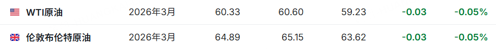 原油期貨微跌,截止發稿,WTI原油跌0.05%,報60.33美元/桶;布倫特原油跌0.05%,報64.89美元/桶。