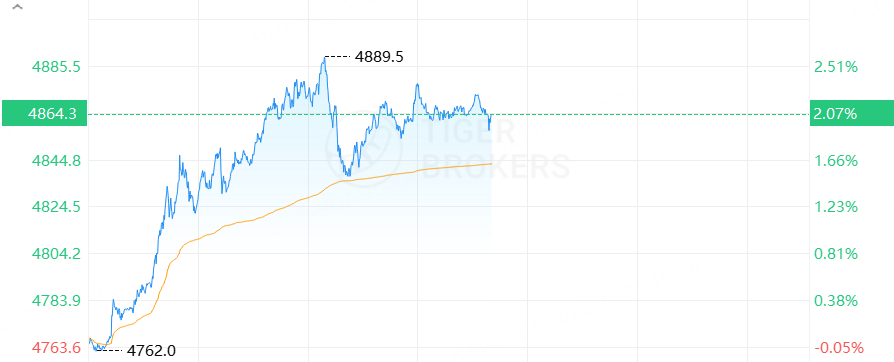 黃金期貨上漲,截止發稿,漲2.07%,報4864.3美元/盎司。