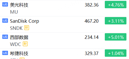 美股異動 | 存儲概念股普漲,西部數據漲超5%,美光科技漲超4%