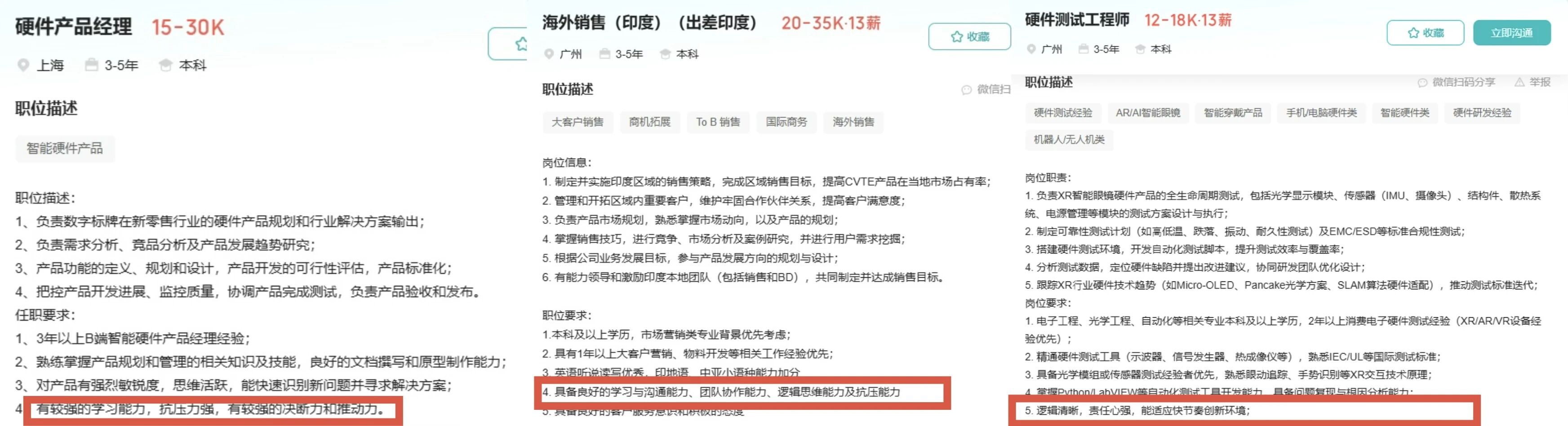 從BOSS直聘上查詢發現,視源股份正開放多個海外銷售職位,這些職位要求和其發佈的高級軟件工程師在內的多個技術崗位要求類似——員工需要具備強抗壓能力。