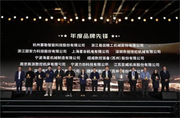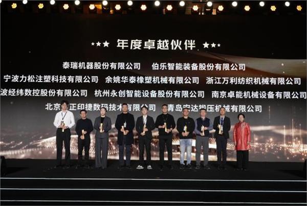 “中國新質造·年度榮耀發佈”將盛典推向高潮,一系列凝聚行業共識的權威獎項在多方共同見證下依次揭曉。永贏金租運營總經理陳奇向6名設備之家達人頒發“年度品牌聲量傳播者”獎;永贏金租副總裁李翔、中國塑料機械工業協會常務副會長粟東平、中國機牀工具工業協會會長毛予鋒分別向32位設備之家合作伙伴頒發“年度卓越夥伴”獎;永贏金租董事長許繼朋與央廣網總裁助理段紅彪聯合向12家企業頒發了“年度品牌先鋒”獎;寧波銀行副行長付文生與央廣傳媒集團黨委委員、央廣網總裁於鋒共同揭曉了獲得“年度行業力量”的塑機、機加、金屬等行業的12家企業;央廣網總裁助理段紅彪向14家企業授予“年度典範”榮譽。