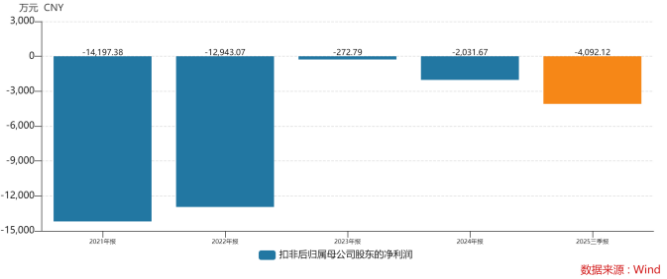 近日,速凍調理肉製品加工企業惠發食品(603536.SH)發佈2025年年度業績預告,公司預計2025年歸母淨利潤爲虧損7500萬元至6200萬元,同比下降約273.81%-352.19%;預計歸母扣淨利潤爲虧損7800萬元至6500萬元,同比下降約219.93%-283.92%。這並非孤立的財務下滑,自2021年起,公司歸母扣非淨利潤持續爲負,累計虧損超3.5億元。