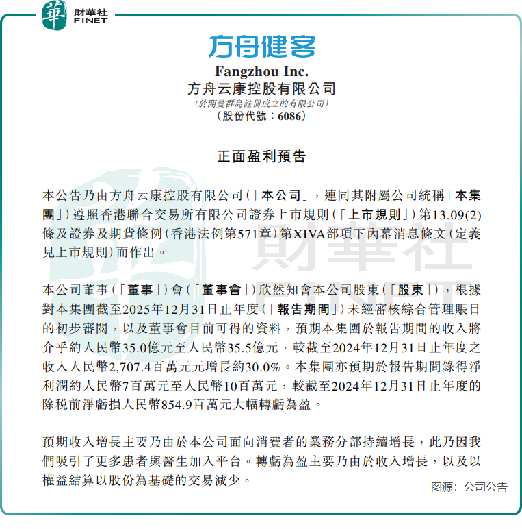 根據公司最新業績預告,方舟健客預計2025年全年收入約35億元至35.5億元(單位人民幣,下同),同比增長約30%,增速較2025年中期12.9%的同比增幅明顯加快。