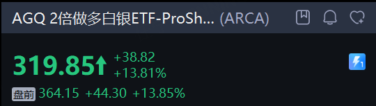 現貨白銀大漲超6%,逼近110美元,現貨黃金漲超2%,均續創歷史新高。 相關概念股盤前普漲,截至發稿,2倍做多白銀ETF-ProShares 大漲近14%, 白銀ETF-iShares 漲近7%,泛美白銀漲超6%,金田、紐曼礦業、金羅斯黃金漲4%,哈莫尼黃金漲超3%。