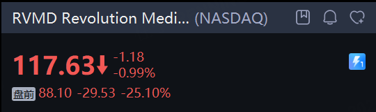 生物技術公司 Revolution Medicines, Inc. 盤前暴跌25%。消息上,據知情人士透露,由於雙方未能就收購價格達成一致,默沙東已停止收購生物技術公司Revolution Medicines的談判。
