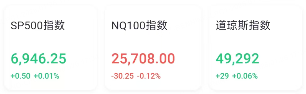 1月26日週一,美股三大指數期貨在盤前時段漲跌不一。本週,美聯儲將公佈利率決議;特斯拉、蘋果、微軟、Meta等科技巨頭陸續公佈業績。