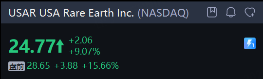 USA Rare Earth Inc. 漲超15%,此前一度漲超60%。今日宣佈,已與美國政府簽署意向書,將獲得總額16億美元的資金支持,用於加速建設國內重稀土價值鏈。同時,公司已完成15億美元的私募融資。