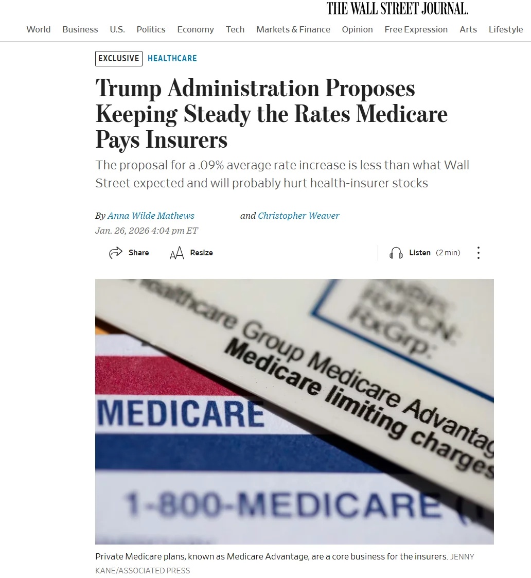 美東時間1月26日美股盤後時段,華爾街日報報道稱,特朗普政府提議明年聯邦醫療保險的費率大致保持不變,這一調整遠低於華爾街的預期。