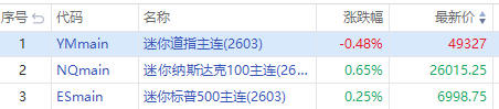 美股三大期指週二盤前走勢分化,納指期貨 $NQmain 漲0.65%,標普500期貨 $ESmain 漲0.25,道指期貨 $YMmain 跌0.48%。
