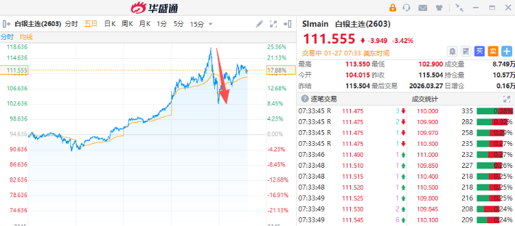 週一白銀現貨一度漲至117.74美元/盎司的紀錄新高,並創下自2008年全球金融危機以來的最大單日漲幅,儘管隨後跳水並抹去全部日內漲幅。