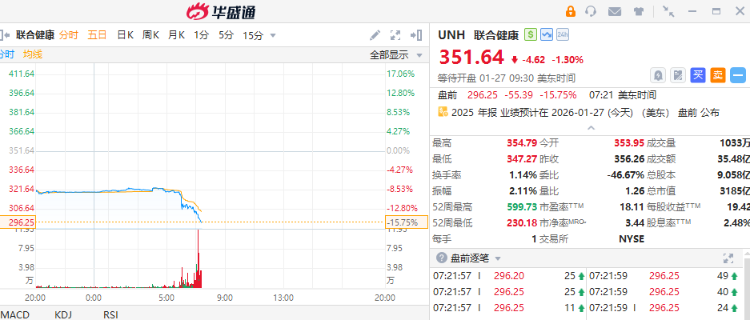 聯合健康盤前跌幅擴大至13%,Q4營收、淨利潤均不及預期;此外,美國聯邦政府計劃明年將私營保險公司運營的聯邦醫療保險優勢計劃的報銷比例平均上調 0.09%,這一增幅遠低於華爾街的預期。