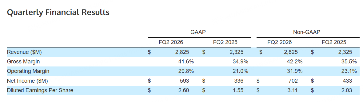 美東時間1月27日盤後,希捷科技發佈2026財年第二季度財務業績:第二財季營收28.3億美元,同比增長22%,分析師預期27.5億美元;第二財季調整後每股收益3.11美元,去年同期2.03美元,預期2.83美元;預計第三季度營收28-30億美元,分析師預期爲27.8億美元。