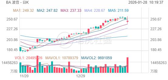 波音股價跌超1%,消息面上,隨着飛機交付量升至2018年以來最高水平,波音公司連續第二個季度實現正自由現金流,營收同比大幅增長,調整後每股收益創十多年來單季新高,商用飛機等核心部門虧損收窄,顯示其正逐步走出多年運營與質量危機的陰影。