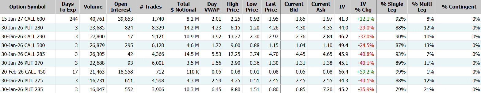 期權方面,波音當日成交41.39萬張,較90日均量放大逾3倍,看漲期權佔比66.4%,其中於1月30日到期的250美元行使價的看漲期權成交居前,成交逾2.4萬張。