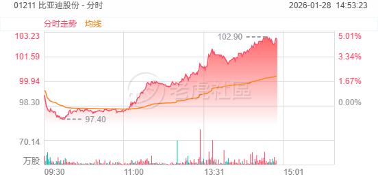 1月28日,新能源車企板塊午後持續走強,理想汽車-W、比亞迪股份漲超4%,蔚來-SW漲超3%,小鵬汽車漲2.96%。