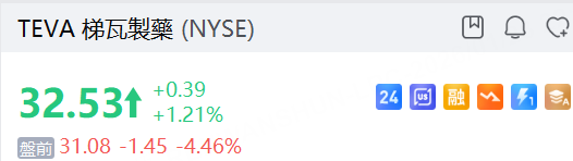 梯瓦的美國存託憑證(ADR)盤前下跌 4.46%。