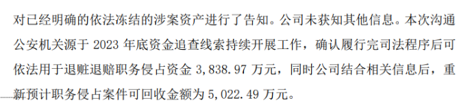 證券之星注意到,中百集團曾分別於2024年和2025年披露過追贓挽損的情況。根據公告,公司最初在2024年4月根據已掌握的資產情況,預估可回收金額約爲1141.26萬元。到了2025年4月,隨着調查的深入,公司獲知經司法程序確認可用於退贓退賠的金額增至約3838.97萬元,整體可回收金額的預估也隨之上調至約5022.49萬元。