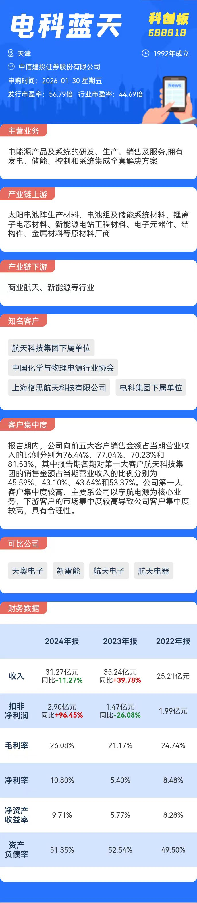 從估值看,公司發行市盈率高於行業平均值,在近期新股中較爲少見,但考慮到公司的科創屬性,結合近兩年來新股首日賺錢效應明顯,綜合判斷電科藍天首日破發概率較小。