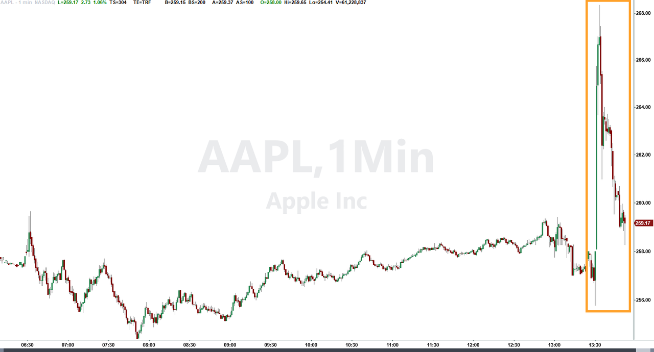 財報公佈後,盤後一度跌近3%的蘋果股價拉昇,盤後曾漲超2%,後曾回吐過半漲幅。評論稱,業績電話會上並沒有任何重大聲明或亮點公佈。