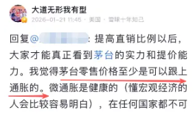 熟悉我們的粉絲應該知道曉榮老師的觀點:茅臺長期大概率能夠跑贏通脹:未來回報大致可由跑平通脹(約5%增長)加上股息再投(約4%)支撐,20倍茅臺估值具有長期確定性。這樣的觀點,其實也與前幾天段永平的點評不謀而合。