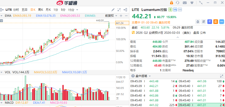 存儲概念大漲,SanDisk績後飆漲20%,美光科技漲超3%,希捷科技漲超1%;光模塊概念大漲,Lumentum控股漲超17%, $COHR 漲超7%。