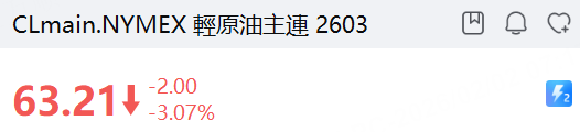 WTI原油主連 2603 大跌3%至63.21美元/桶.