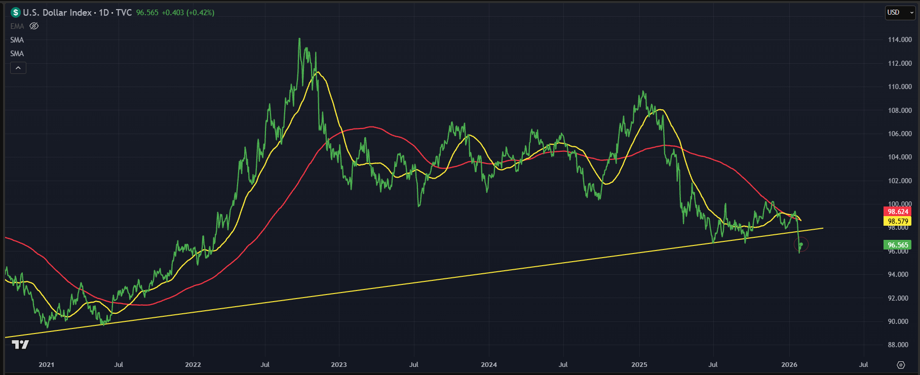 金吾財訊 | 本週初,美國總統特朗普回應傳媒提問時表示並不擔心近期美元下跌,並公開批評中國及日本刻意壓低本國貨幣以提升出口競爭力。有關言論被市場解讀爲美方對弱美元環境的默許,進一步加劇投資者對美國匯率政策取向的不確定性,美元隨即承壓下滑。美匯指數一度下挫至95.81點,屢創2022年初以來新低,兌多種主要貨幣亦同步跌至近月甚至近年低位,反映拋售壓力頗爲全面。