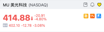 大型科技股盤前多數下跌,美光科技跌超3%,英偉達、特斯拉跌超2%,微軟、亞馬遜跌超1%。