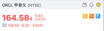甲骨文盤前下跌3.65%,此前該公司宣佈計劃今年籌集高達500億美元的債務和股權。