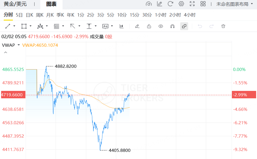 2月2日,現貨黃金、白銀跌幅進一步收窄。現貨黃金跌幅從最多10%收窄至2.99%,報4719.66美元/盎司。