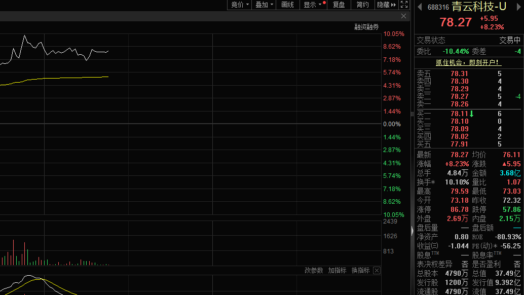 2月3日,青雲科技(688316)股價大漲。截至發稿,股價漲幅超8%。