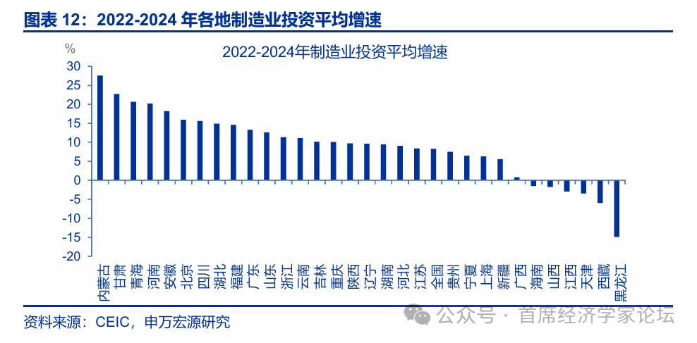 投資增速目標分化,西部地區更具“衝勁”。 投資方面,西部地區更具“衝勁”,新疆設定了8%左右的較高投資增速目標。陝西特別強調“工業投資年均增長6%左右”,或表明製造業升級是其投資的核心抓手。沿海地區如廣東(5%)、河北(5.5%)、吉林(3%)趨穩,更側重產業投資;北京則不再設定具體投資增速數值,而是強調“優化投資結構”。