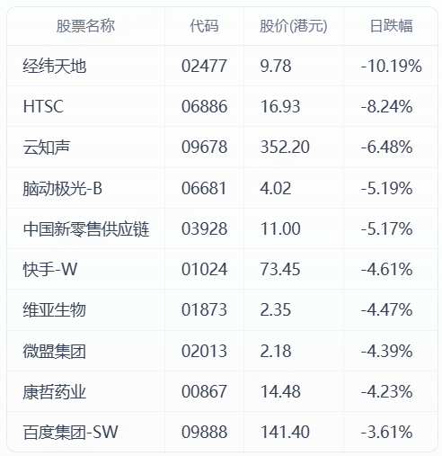 大型科技股分化:騰訊控股跌2.92%,阿里巴巴跌1.41%,小米集團跌1.31%,美團跌1.74%,百度集團跌3.61%;華虹半導體漲4.16%,海爾智家漲2.73%,理想汽車漲1.86%。