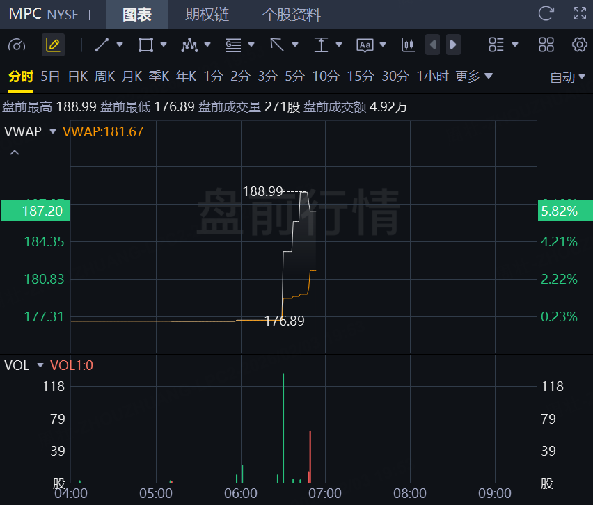 財報發佈後,馬拉松原油盤前漲近6%。