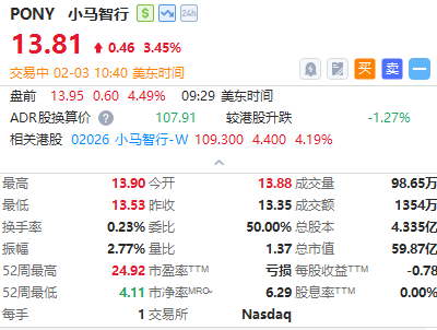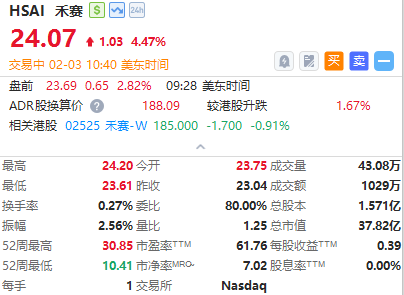 華盛資訊2月3日訊,熱門中概股走勢分化。禾賽大漲4%,公司規劃2026年產能翻番;