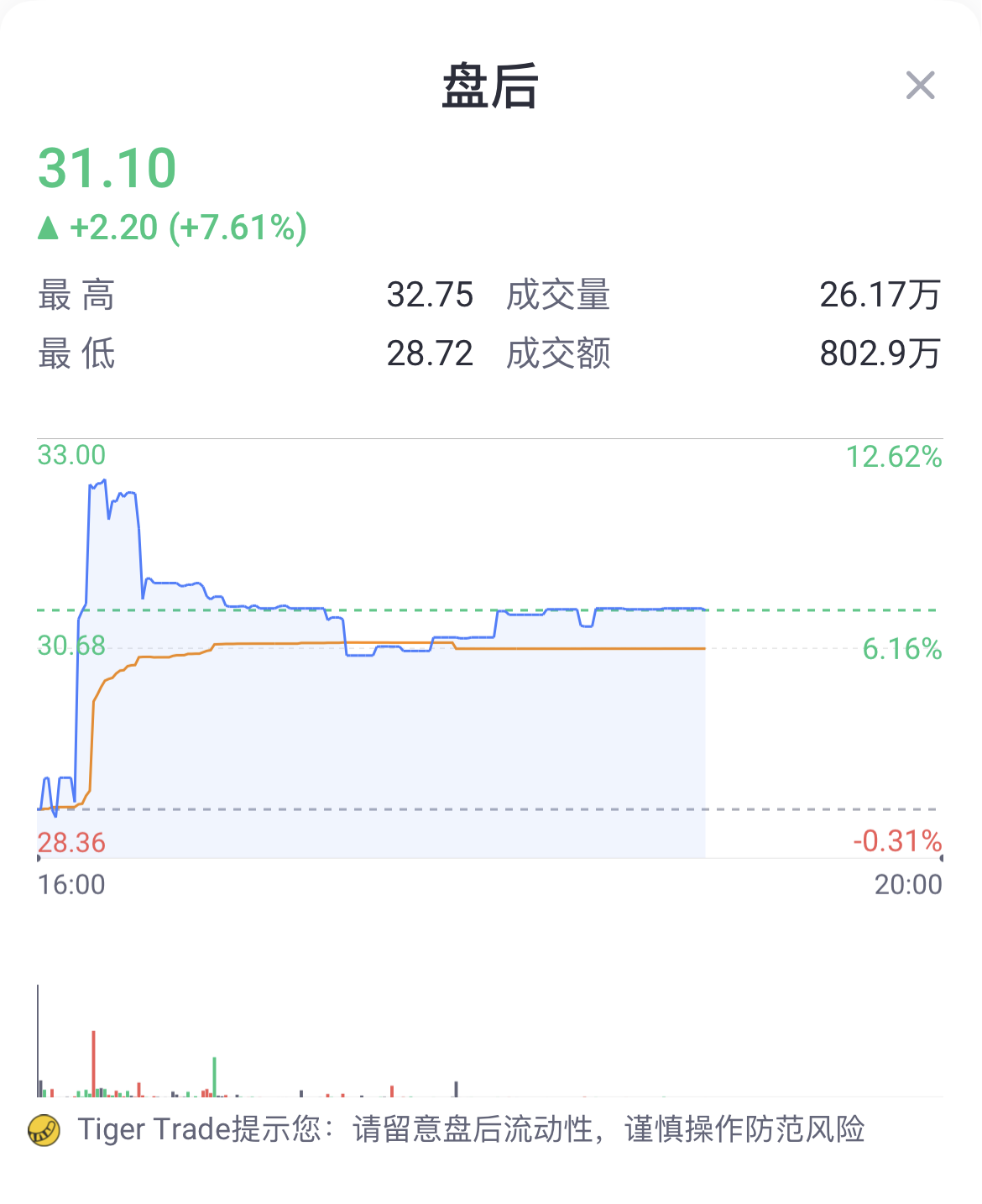 該股在盤後交易中上漲 7%,但週二常規交易時段收盤卻下跌 8%。