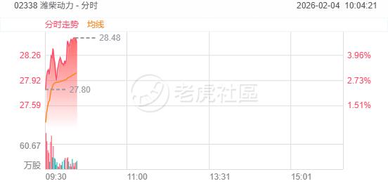 2月4日,濰柴動力漲超4%,高見28.36港元,再創歷史新高,公司有望轉型成爲AIDC發電設備全面供應商。
